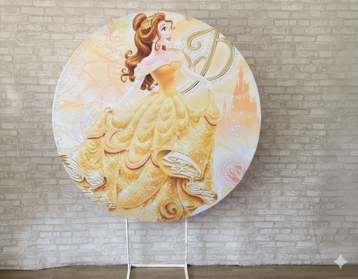 Alugue Estrutura Painel Redondo e a Capa de Tecido do Tema - Bela e a Fera