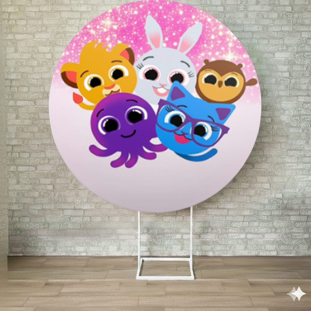 Alugue Estrutura Painel Redondo e a Capa de Tecido do Tema - Bolofofos Rosa