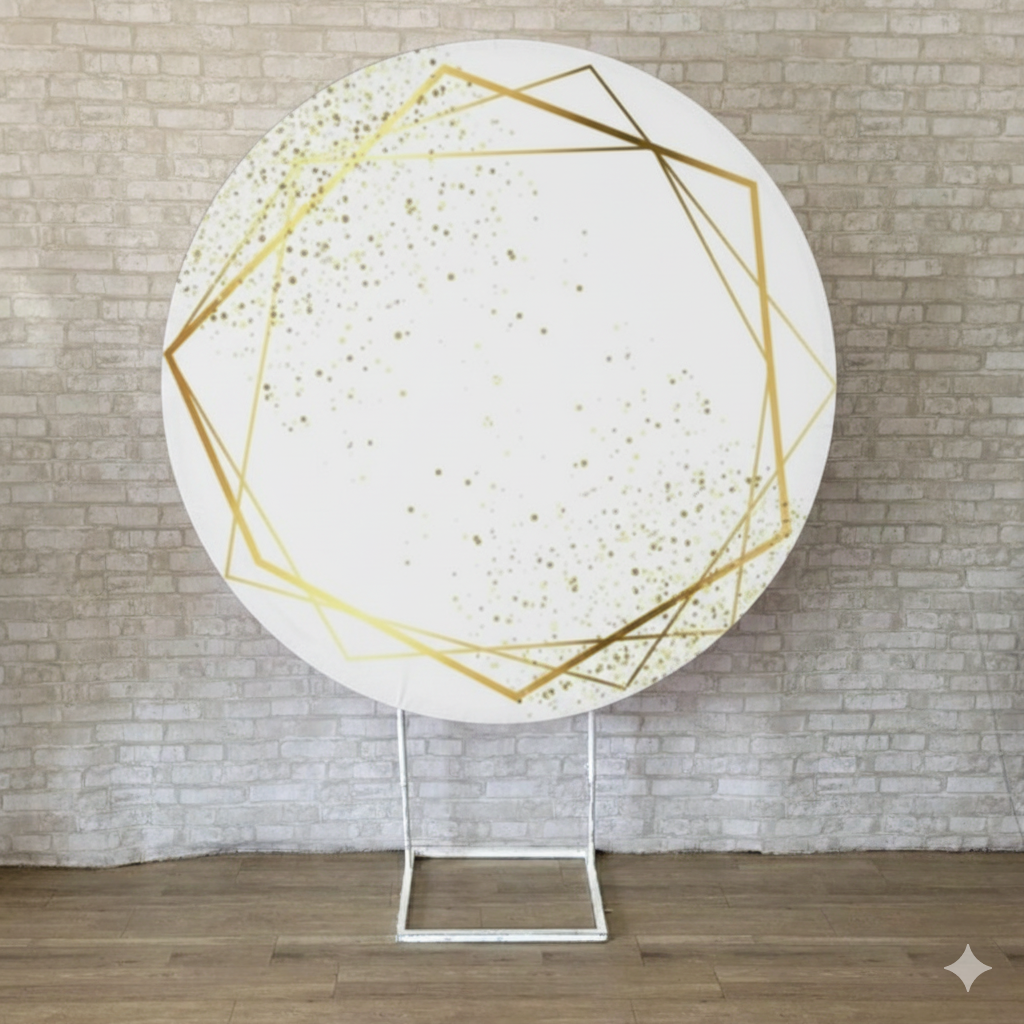Alugue Estrutura Painel Redondo e a Capa de Tecido do Tema - Geométrico Dourado