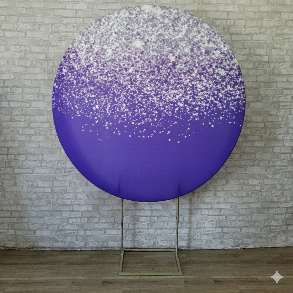 Alugue Estrutura Painel Redondo e a Capa de Tecido do Tema - Glitter Roxo