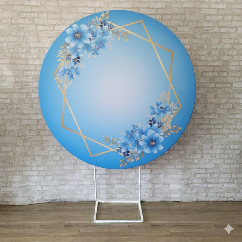 Alugue Estrutura Painel Redondo e a Capa de Tecido do Tema - Flores Azul