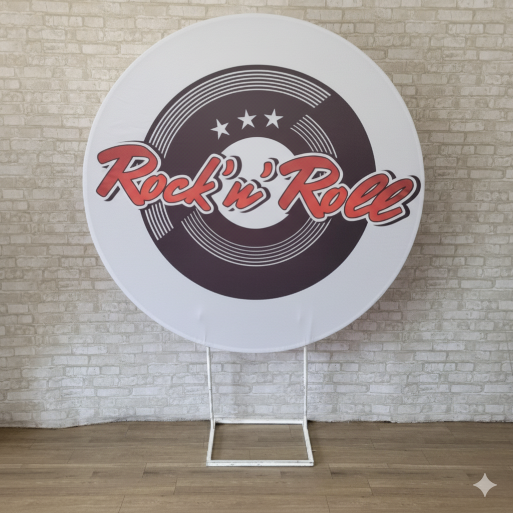 Alugue Estrutura Painel Redondo e a Capa de Tecido do Tema - Rock Roll