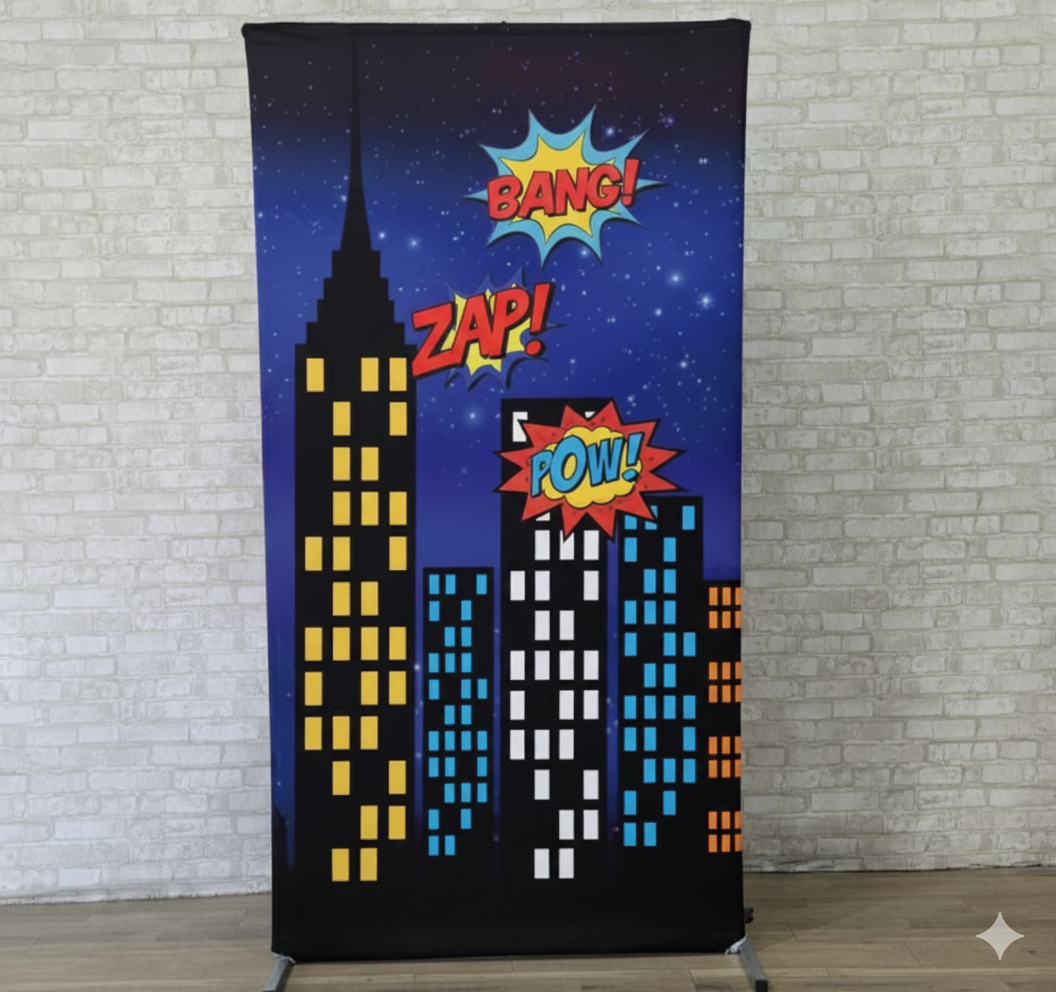 Alugue Estrutura Painel Retangular e a Capa de Tecido do Tema - Heróis
