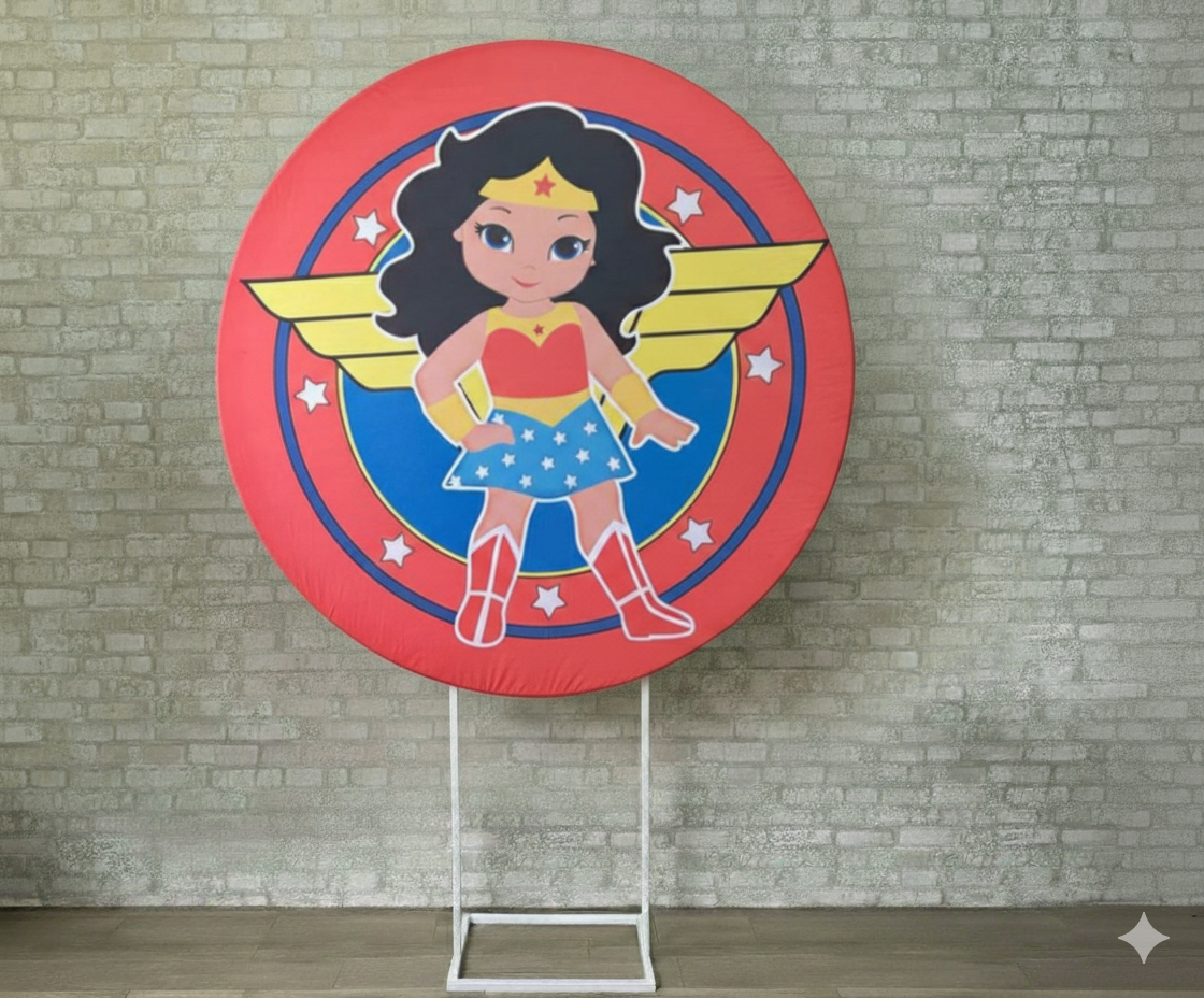 Alugue Estrutura Painel Redondo e a Capa de Tecido do Tema - Mulher Maravilha Baby