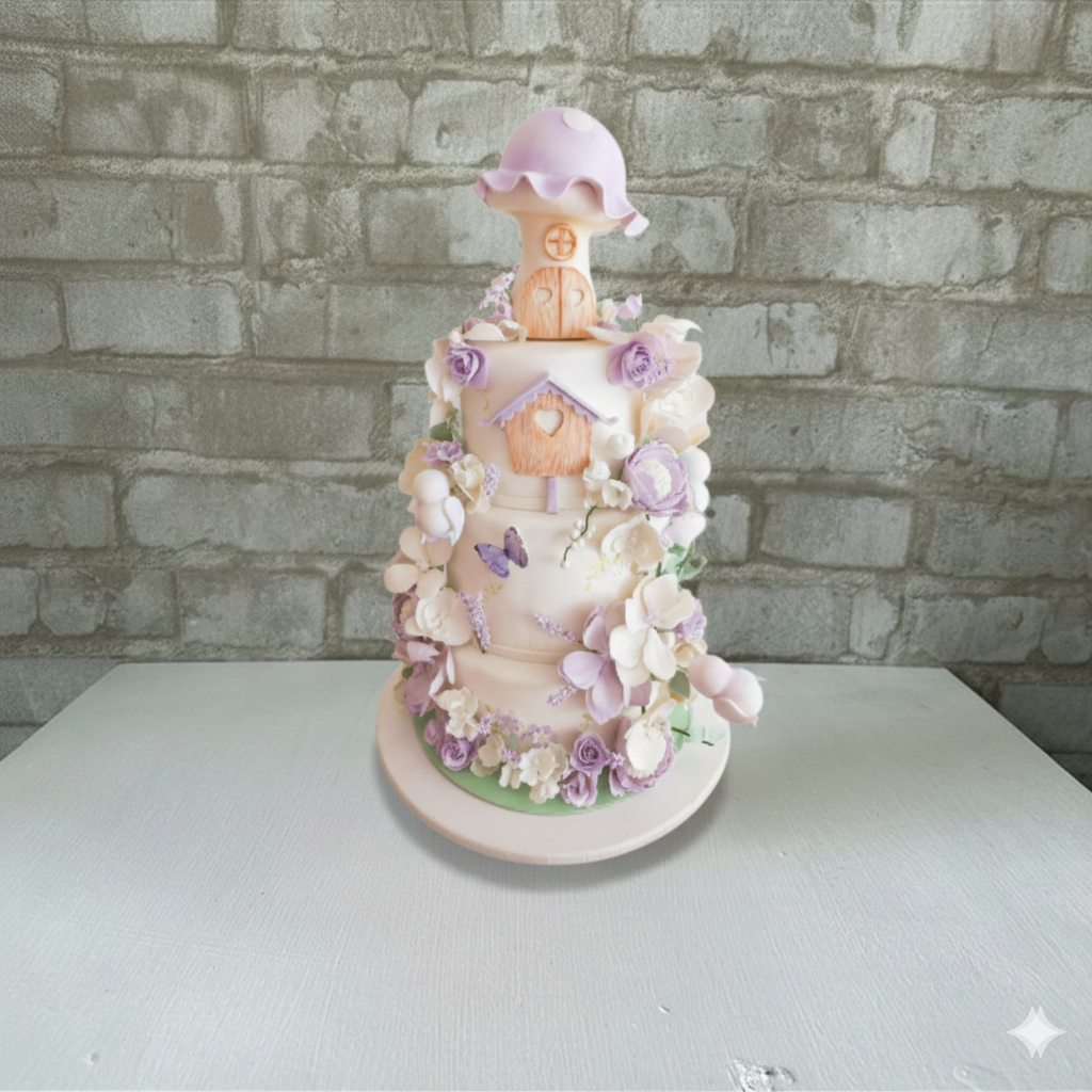 Alugue Bolo Fake Cenográfico Jardim Encantado Lilás