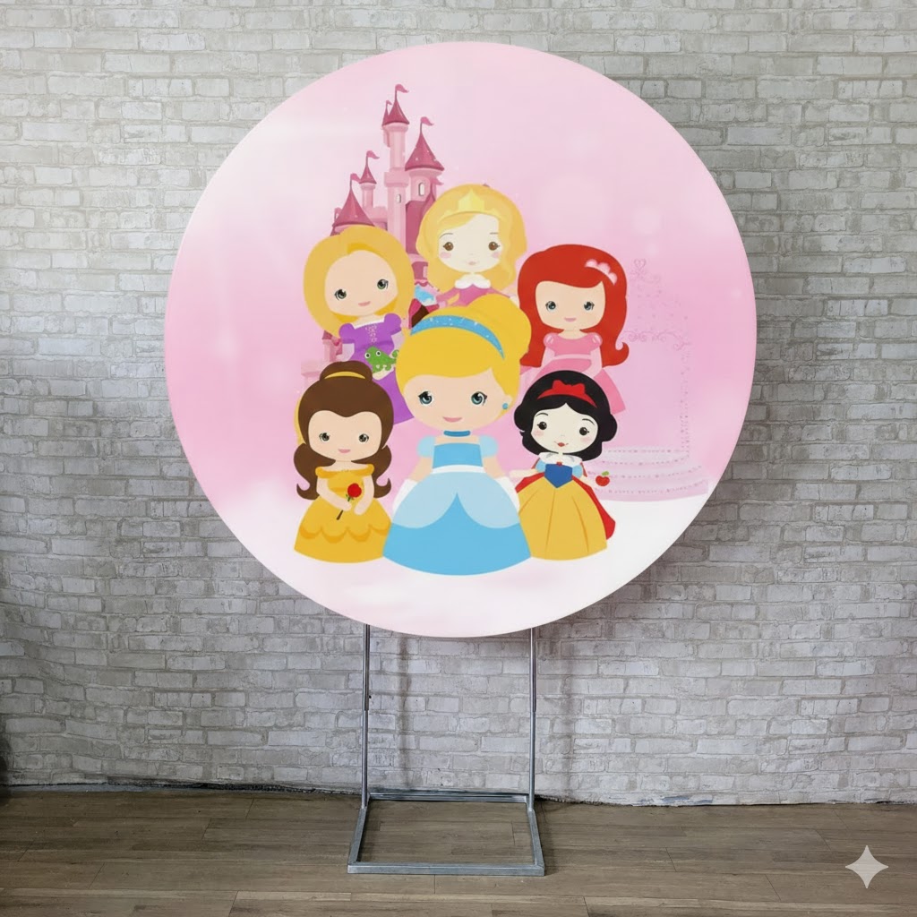 Alugue Estrutura Painel Redondo e a Capa de Tecido do Tema - Princesas Baby