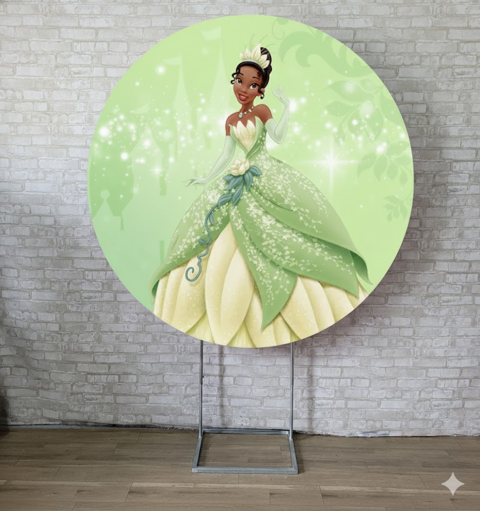Alugue Estrutura Painel Redondo e a Capa de Tecido do Tema - Princesa e o Sapo