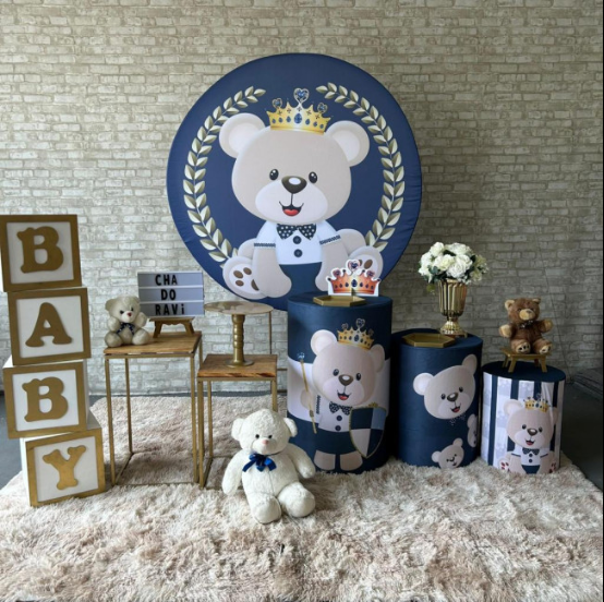 Alugue Tema Para Festa Decoração Ursinho Príncipe Tecido ( Modelo 3 )