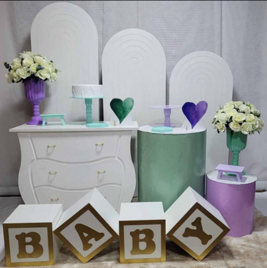 Alugue Tema Para Festa Decoração Chá Revelação Lílas e Verde Tecido ( Modelo 3 )