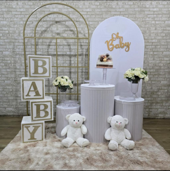 Alugue Tema Para Festa Decoração Chá Revelação Branco Ursinho Tecido (Modelo 7 )