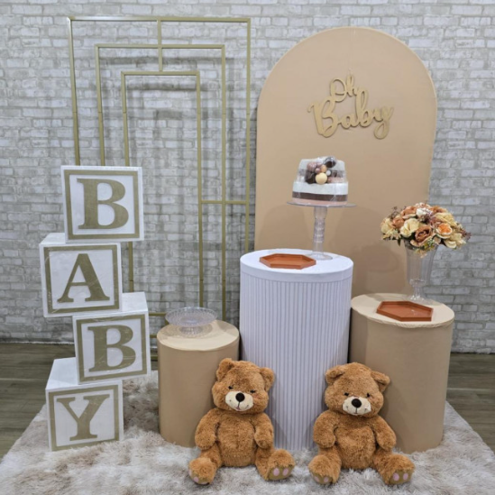 Alugue Tema Para Festa Decoração Chá Revelação Nude Ursinho Tecido (Modelo 05)