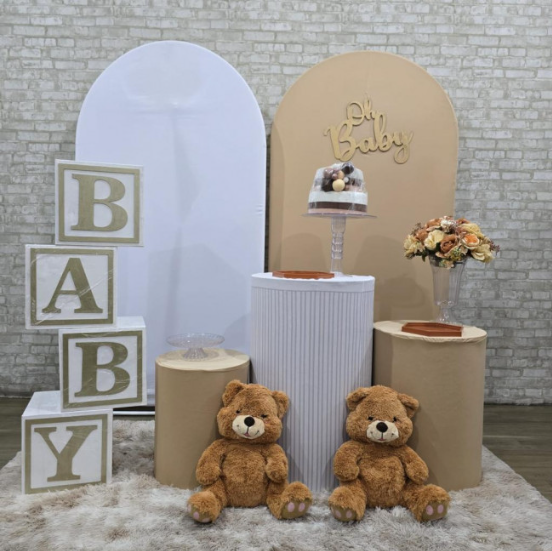 Alugue Tema Para Festa Decoração Chá Revelação Nude Ursinho Tecido (Modelo 04)