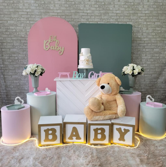 Alugue Tema Para Festa Decoração Chá Revelação Rosa e Verde Tecido ( Modelo 1 )