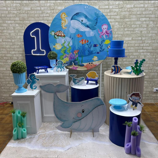 Alugue Tema Para Festa Decoração Fundo do Mar Menino Tecido ( Modelo 2 )