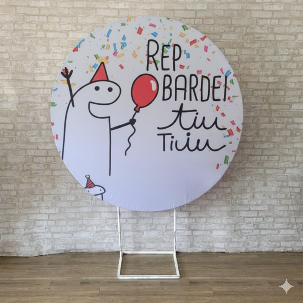Alugue Estrutura Painel Redondo e a Capa de Tecido do Tema - Meme Flork