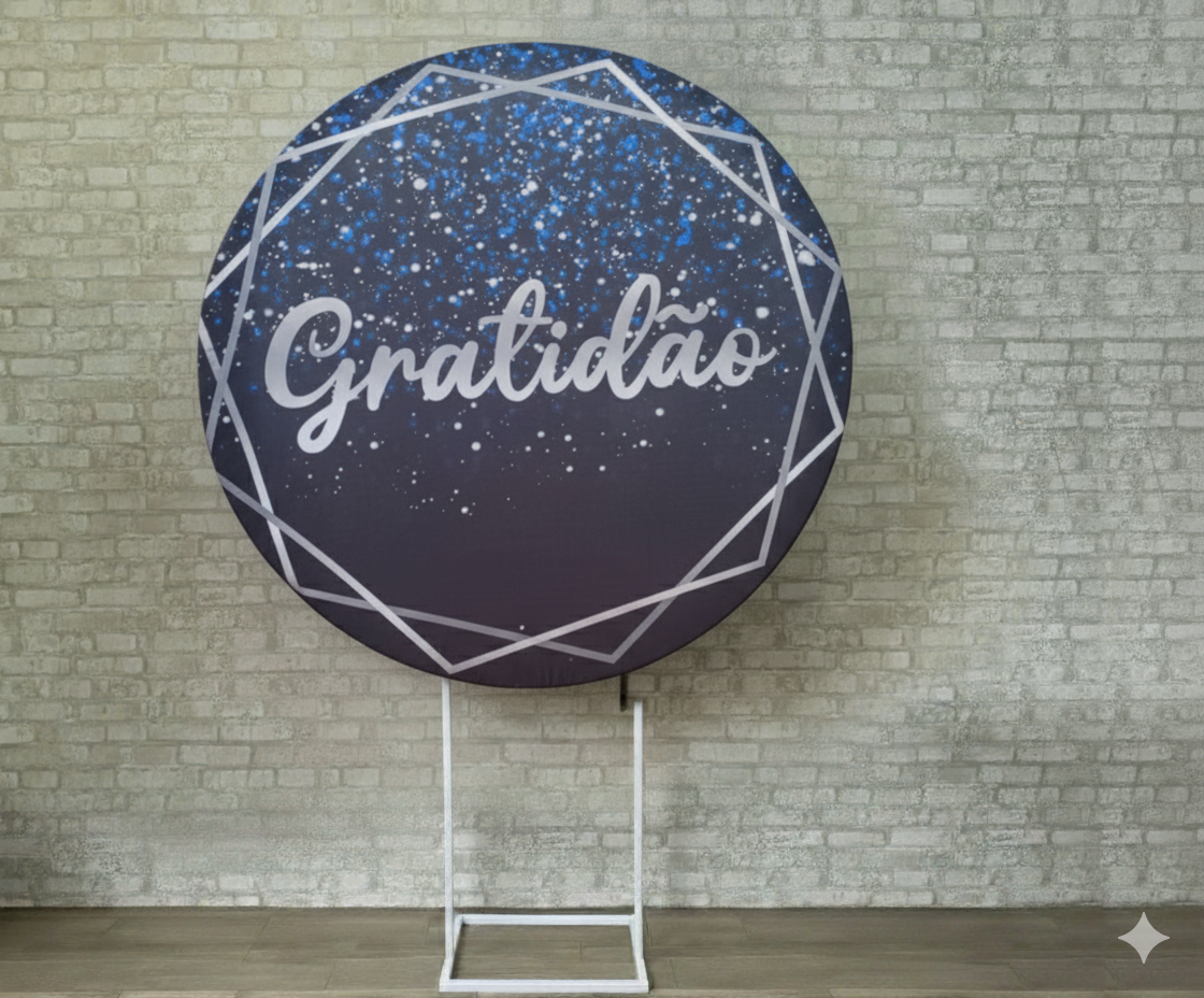 Alugue Estrutura Painel Redondo e a Capa de Tecido do Tema - Gratidão