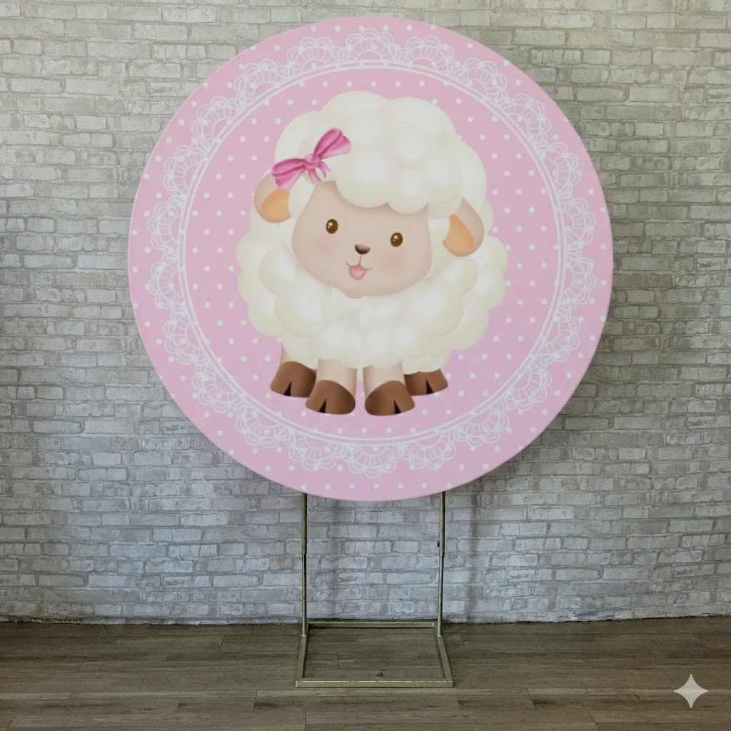 Alugue Estrutura Painel Redondo e a Capa de Tecido do Tema - Ovelhinha
