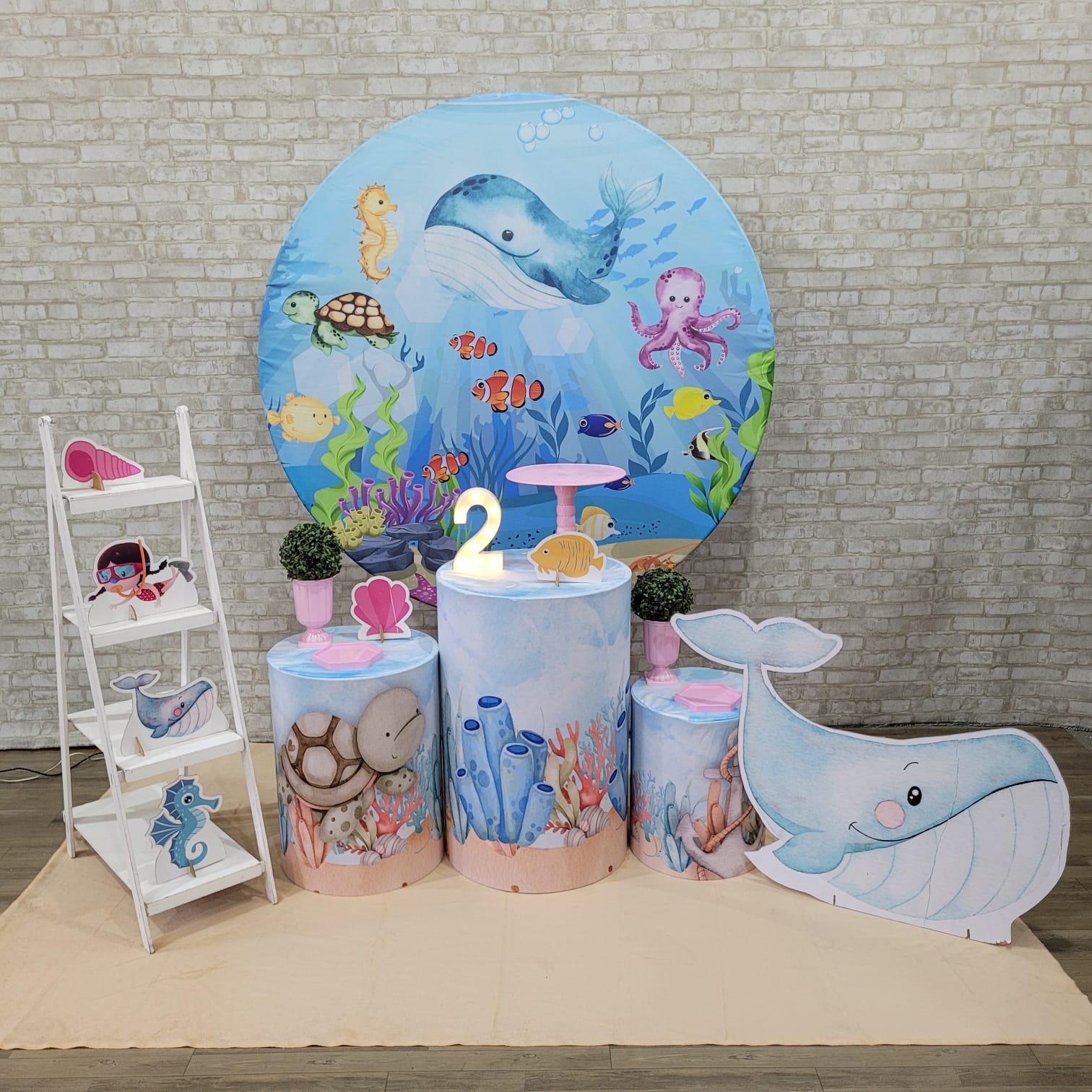 Alugue Tema Para Festa Decoração Fundo do Mar Menina Tecido ( Modelo 2 )