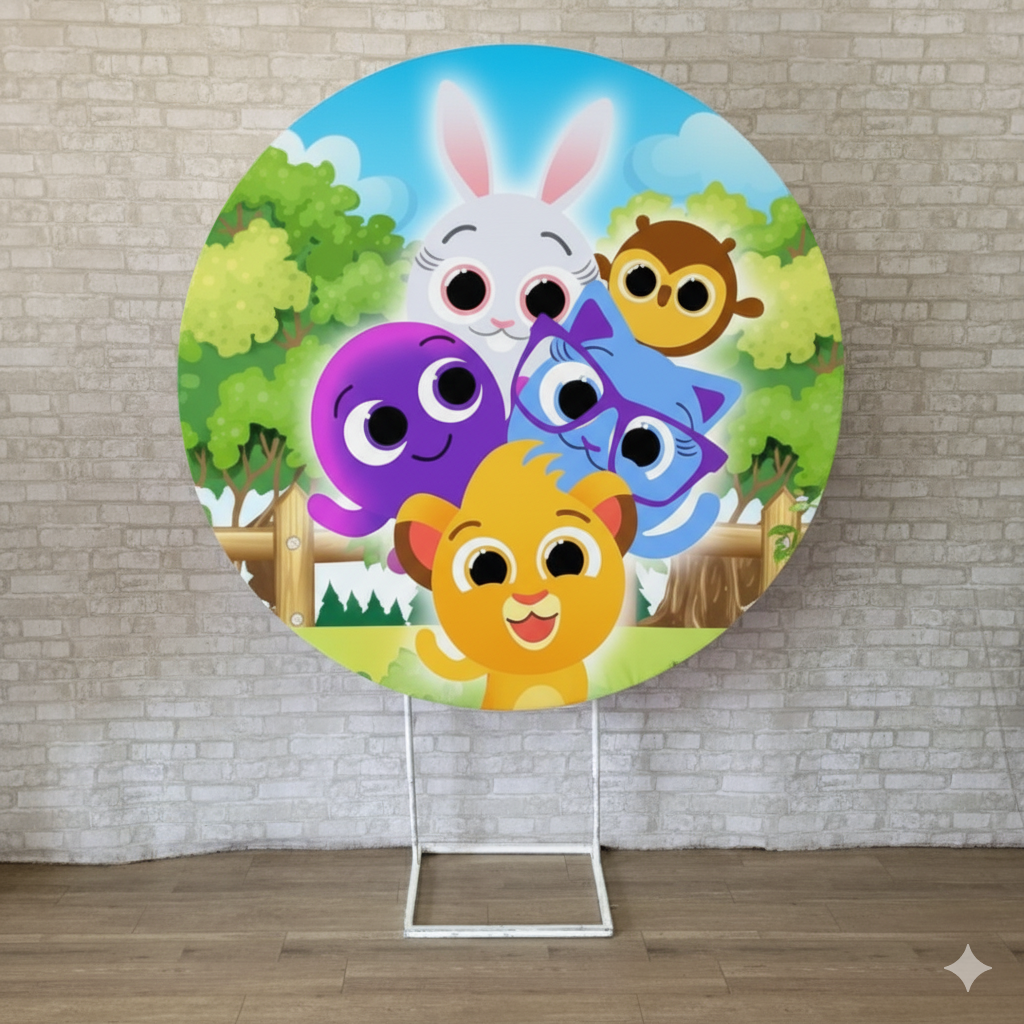 Alugue Estrutura Painel Redondo e a Capa de Tecido do Tema - Bolofofos