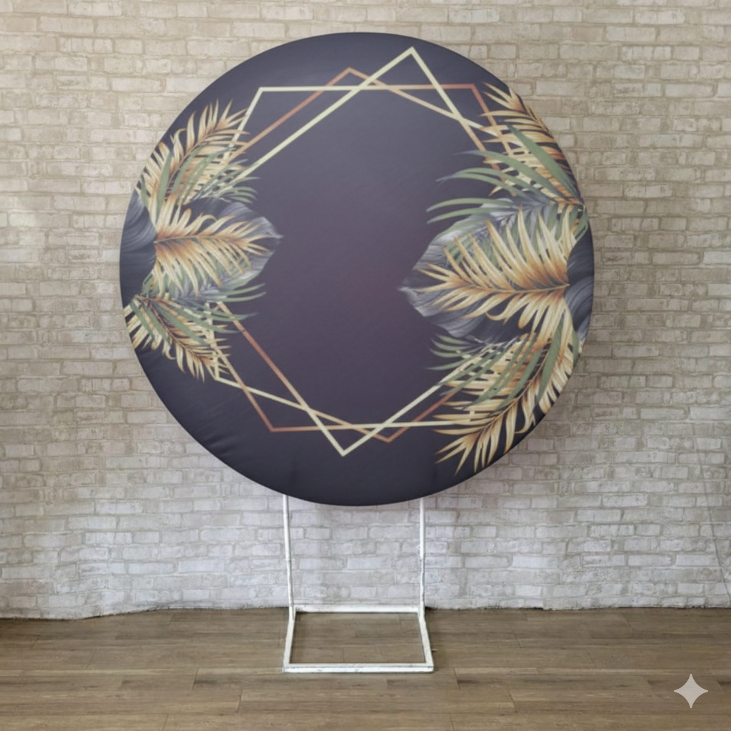 Alugue Estrutura Painel Redondo e a Capa de Tecido do Tema - Flores Preto