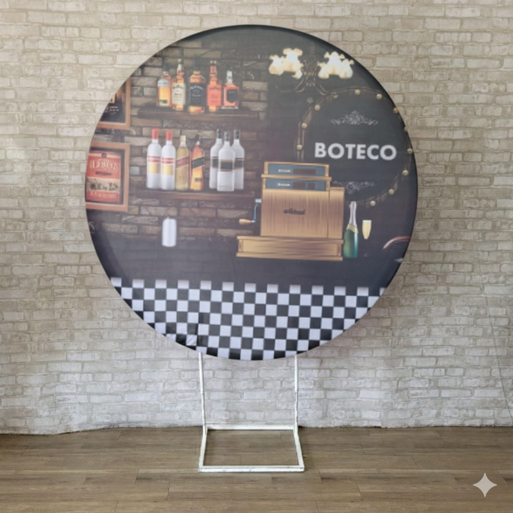 Alugue Estrutura Painel Redondo e a Capa de Tecido do Tema - Boteco