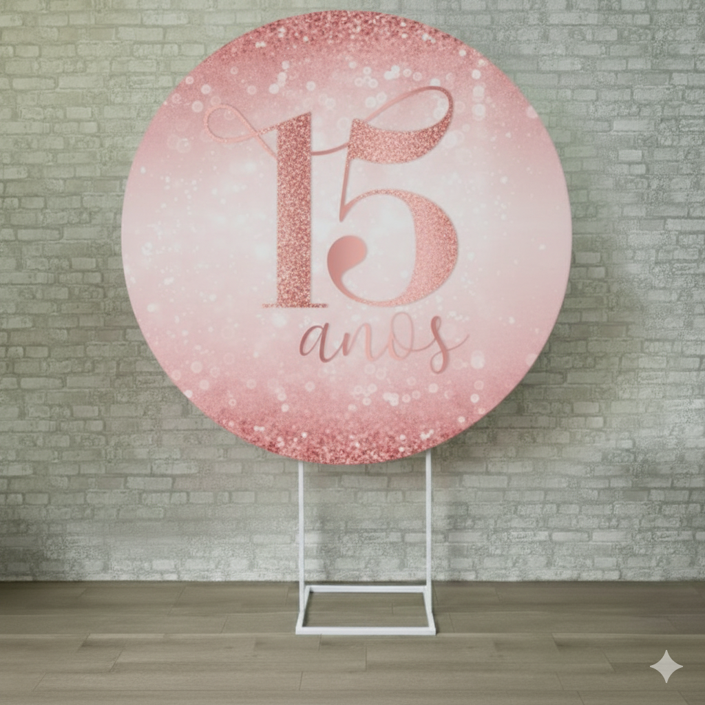 Alugue Estrutura Painel Redondo e a Capa de Tecido do Tema - 15 Anos Rosa