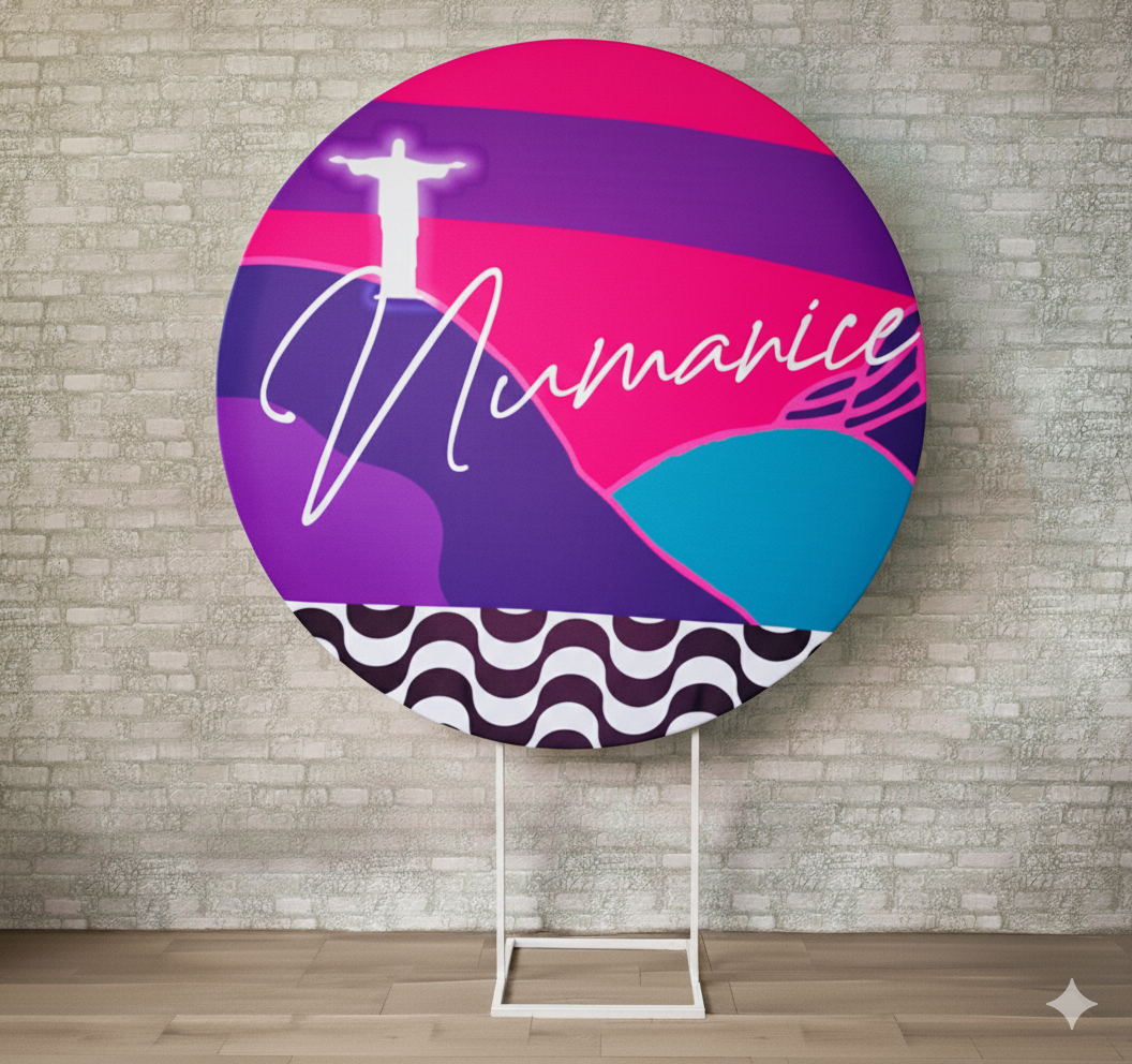 Alugue Estrutura Painel Redondo e a Capa de Tecido do Tema - Tardezinha Numanice