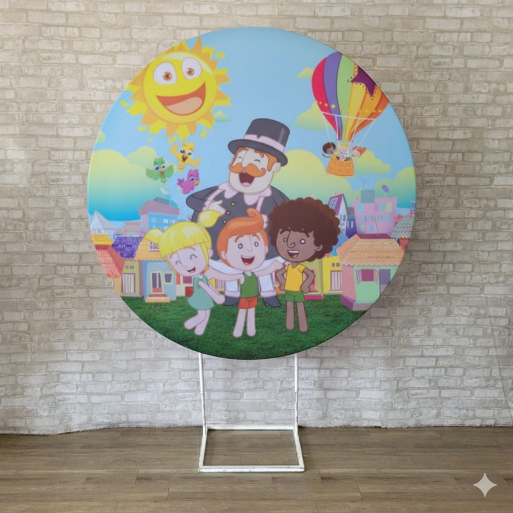 Alugue Estrutura Painel Redondo e a Capa de Tecido do Tema - Mundo Bita