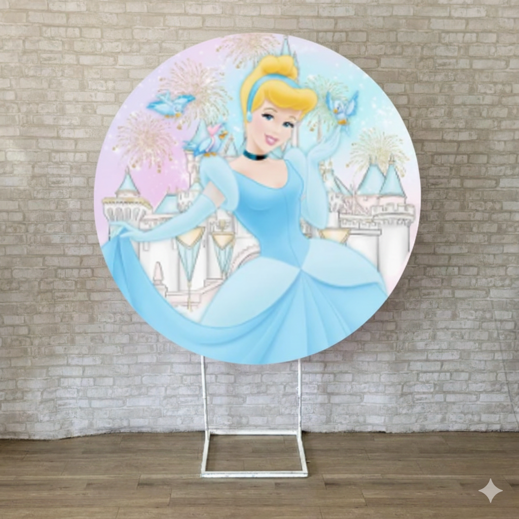 Alugue Estrutura Painel Redondo e a Capa de Tecido do Tema - Cinderela