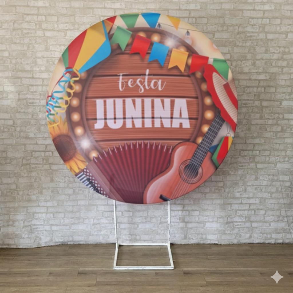 Alugue Estrutura Painel Redondo e a Capa de Tecido do Tema - Festa Junina