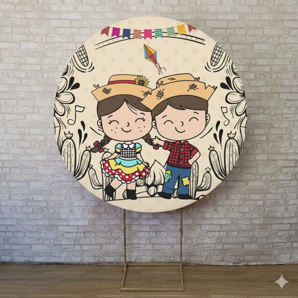 Alugue Estrutura Painel Redondo e a Capa de Tecido do Tema - Festa Junina