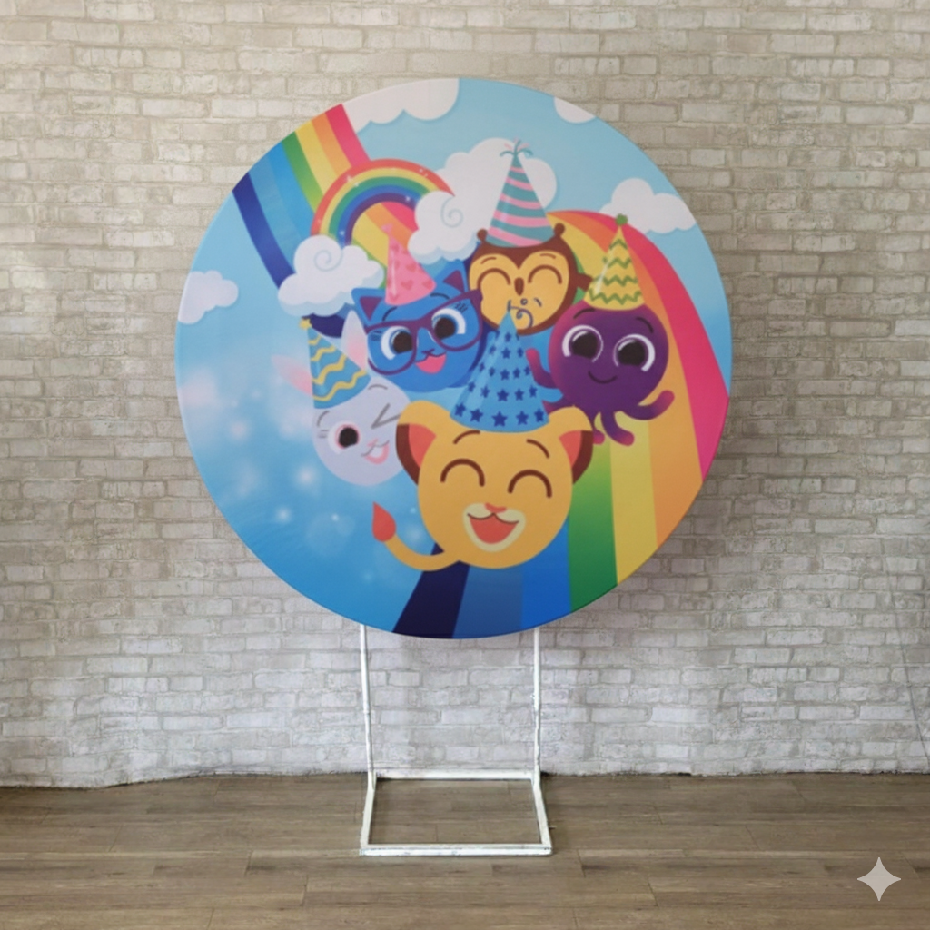 Alugue Estrutura Painel Redondo e a Capa de Tecido do Tema - Bolofofos
