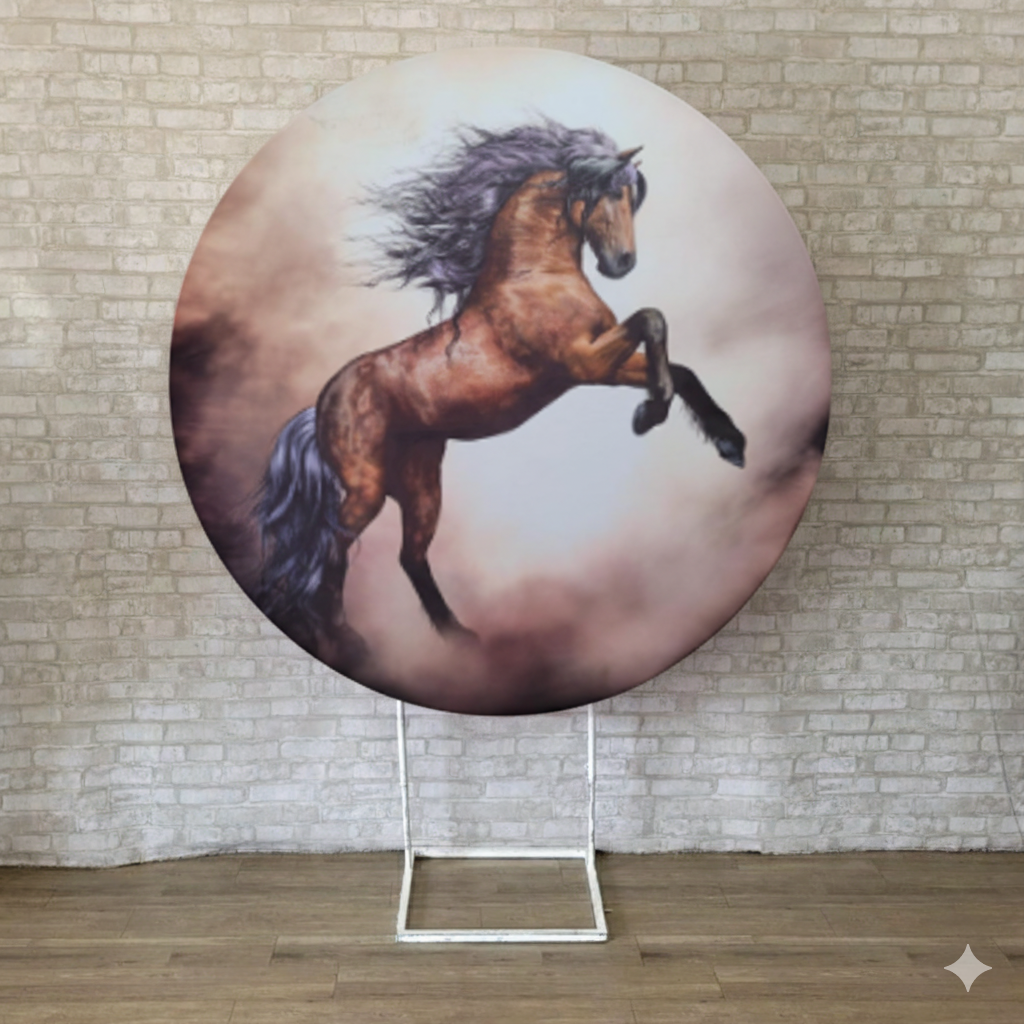 Alugue Estrutura Painel Redondo e a Capa de Tecido do Tema - Cavalo